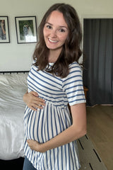 PinkBlush Blue Striped Cross Back Peplum Maternity Top