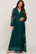 PinkBlush Forest Green Lace Mesh Overlay Long Sleeve Maternity Maxi Dress