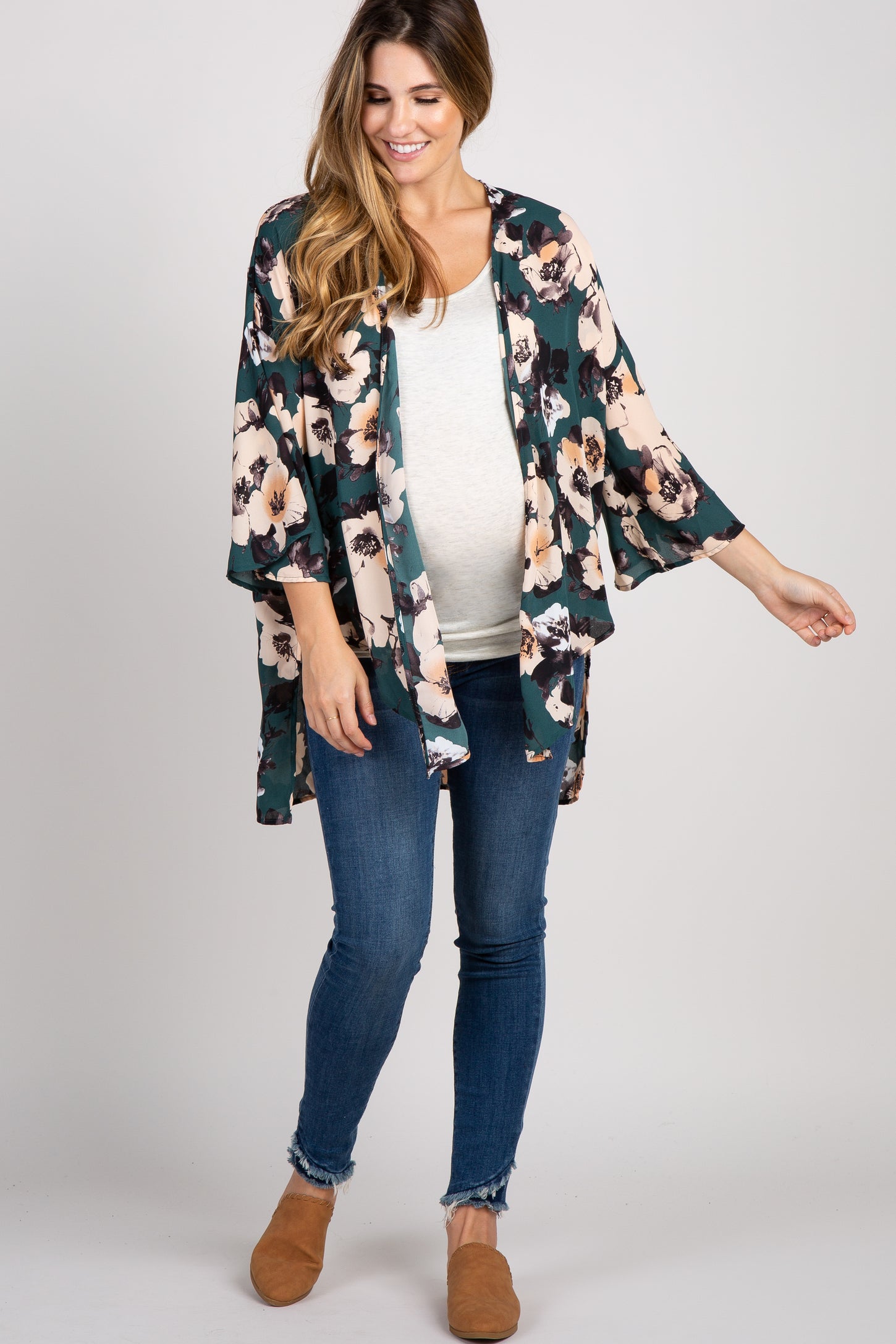 PinkBlush Green Floral Chiffon Maternity Cover Up