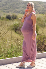 PinkBlush Mauve Solid Sleeveless Fitted Maternity Maxi Dress