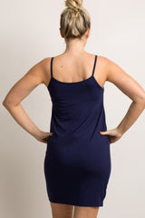 A solid maternity sleep dress featuring cami straps and a rounded neckline.
