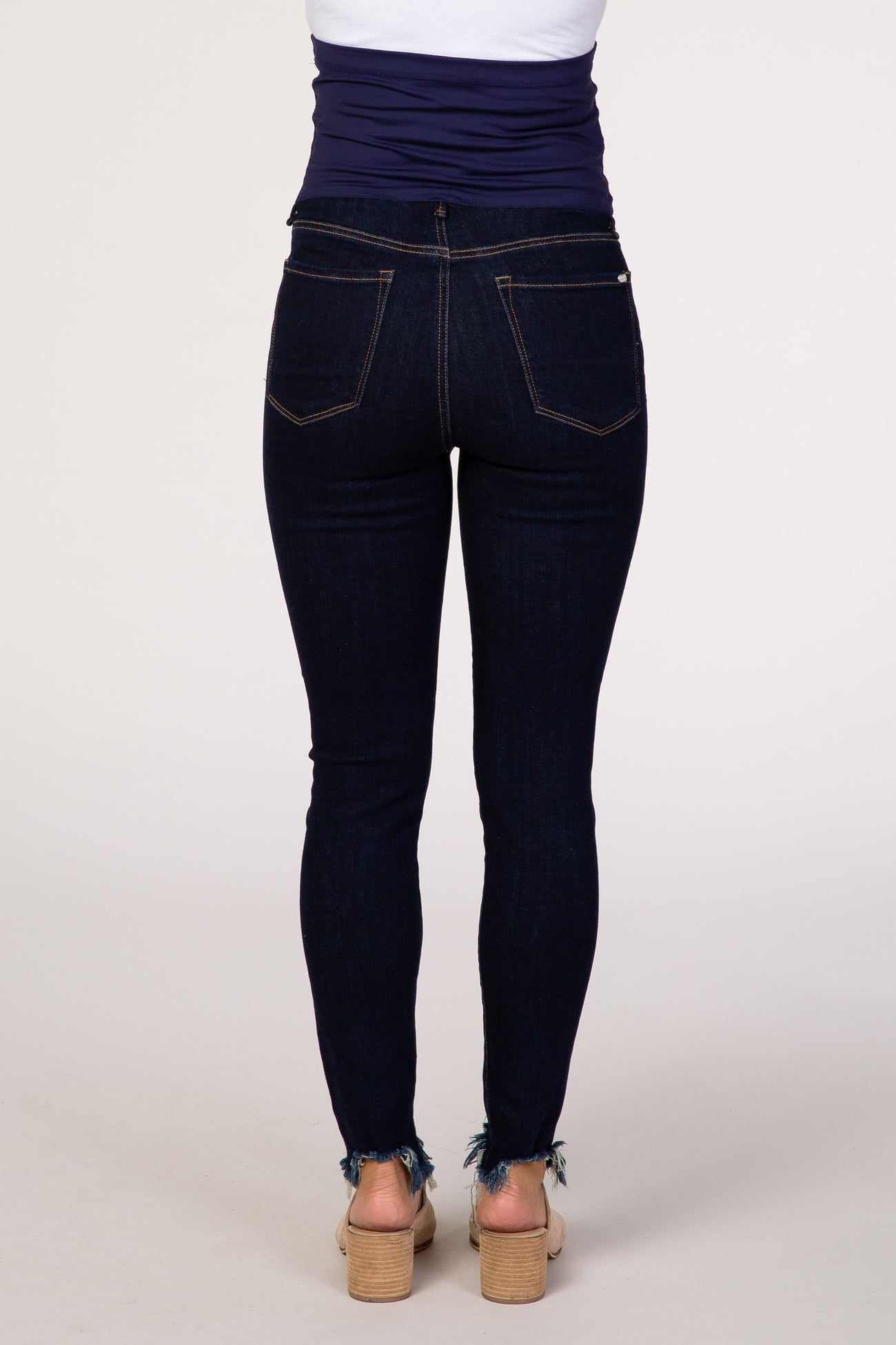 PinkBlush Navy Blue Distressed Hem Maternity Jean