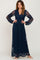 PinkBlush Navy Lace Mesh Overlay Long Sleeve Maxi Dress