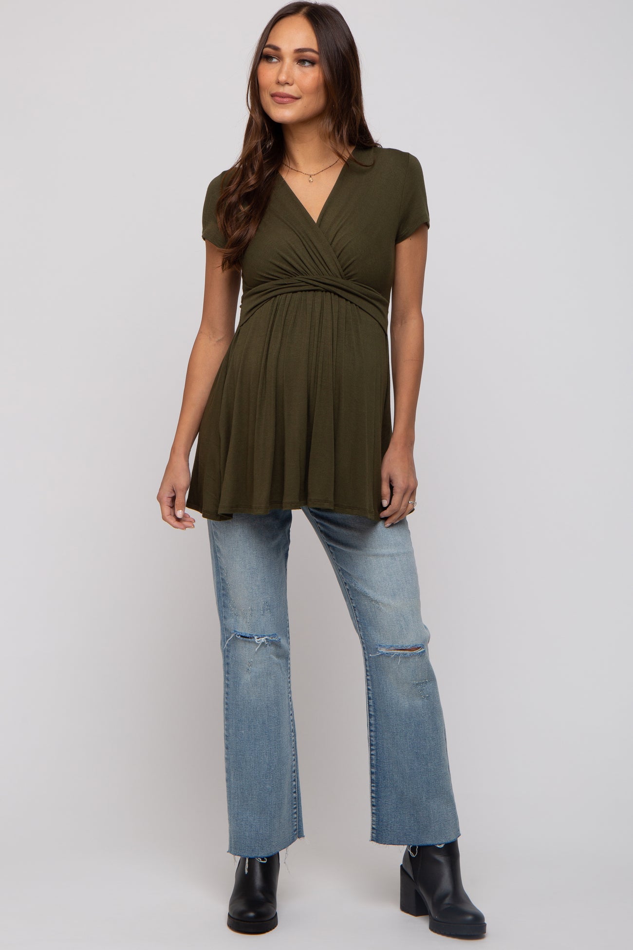 PinkBlush Olive Draped Front Maternity Nursing Top