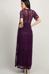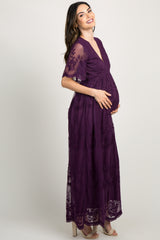 PinkBlush Plum Lace Mesh Overlay Maternity Maxi Dress