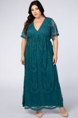 PinkBlush Teal Lace Mesh Overlay Plus Maternity Maxi Dress