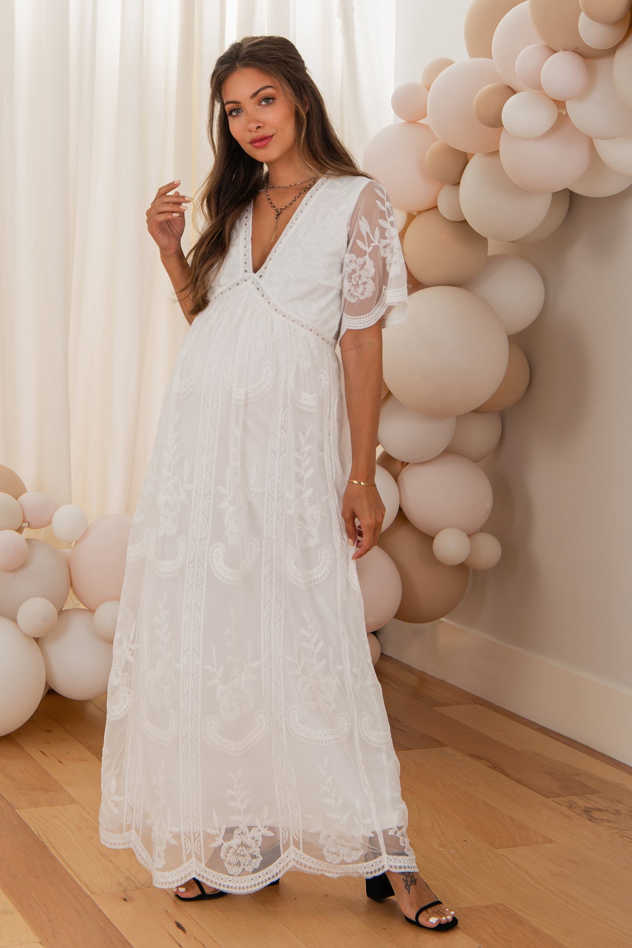 PinkBlush White Lace Mesh Overlay Maternity Maxi Dress