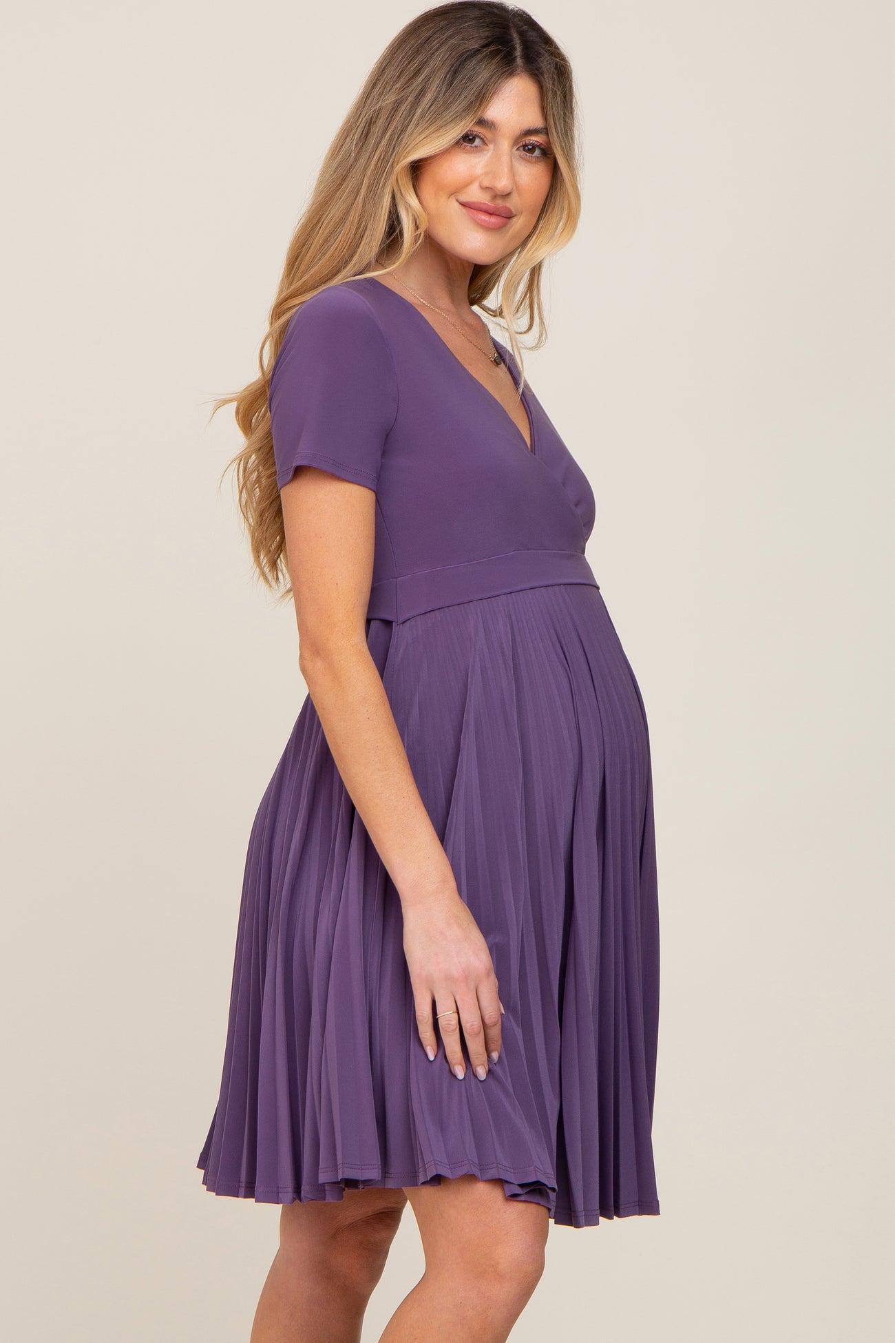 Plum Pleated Maternity/Nursing Dress