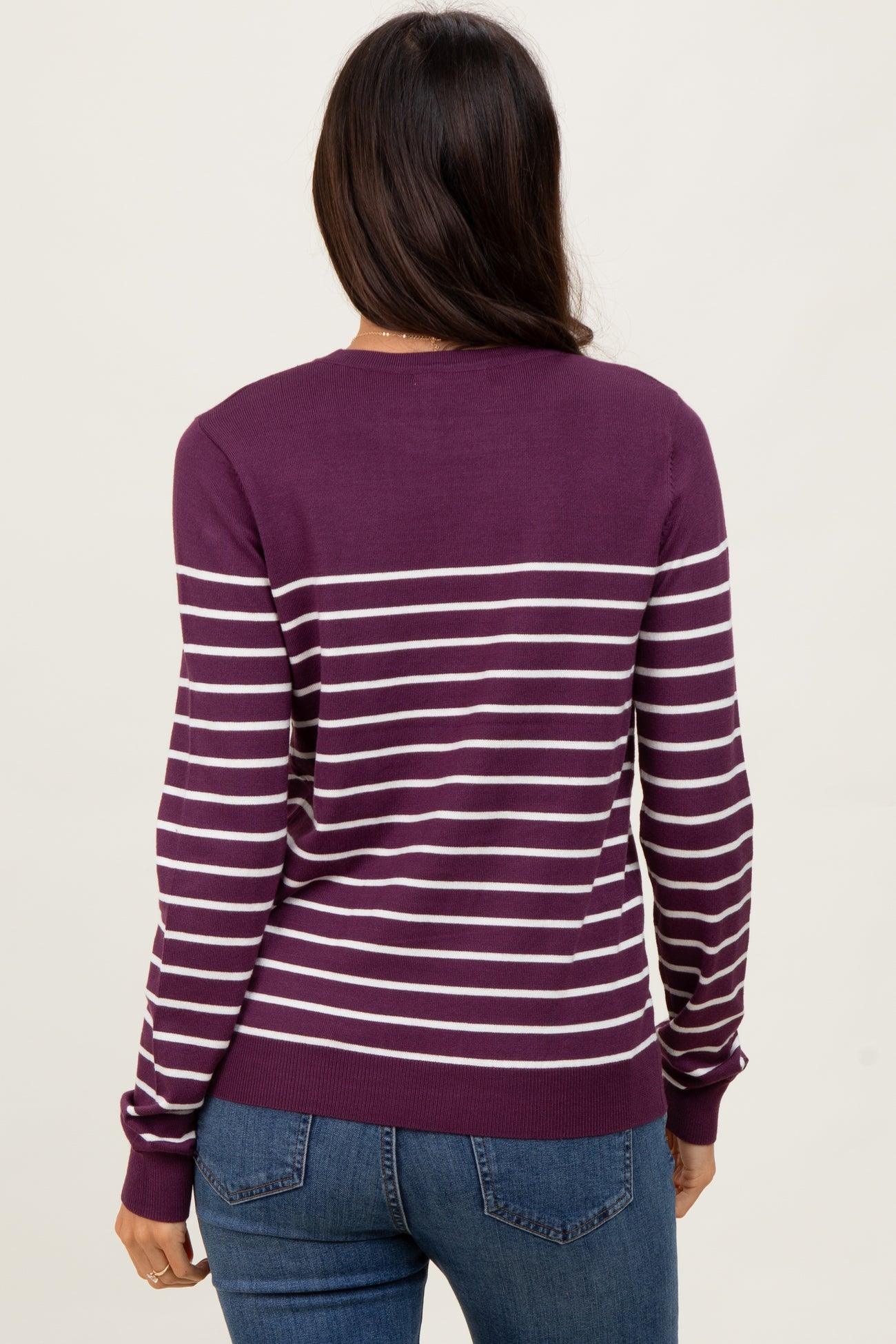 Stay cozy and stylish with our Plum Striped Knit Long Sleeve Top. Featuring a rich plum base paired with classic white horizontal stripes, this knit top offers a timeless look perfect for any season. The soft, breathable fabric ensures all-day comfort, while the fitted silhouette flatters all body types. Its versatile design pairs effortlessly with jeans, skirts, or layered under jackets for a chic, casual vibe. Whether you're heading to work, brunch, or a weekend outing, this long sleeve top is a must-have addition to your wardrobe. Easy to care for and built to last, it’s your go-to for effortless everyday style.