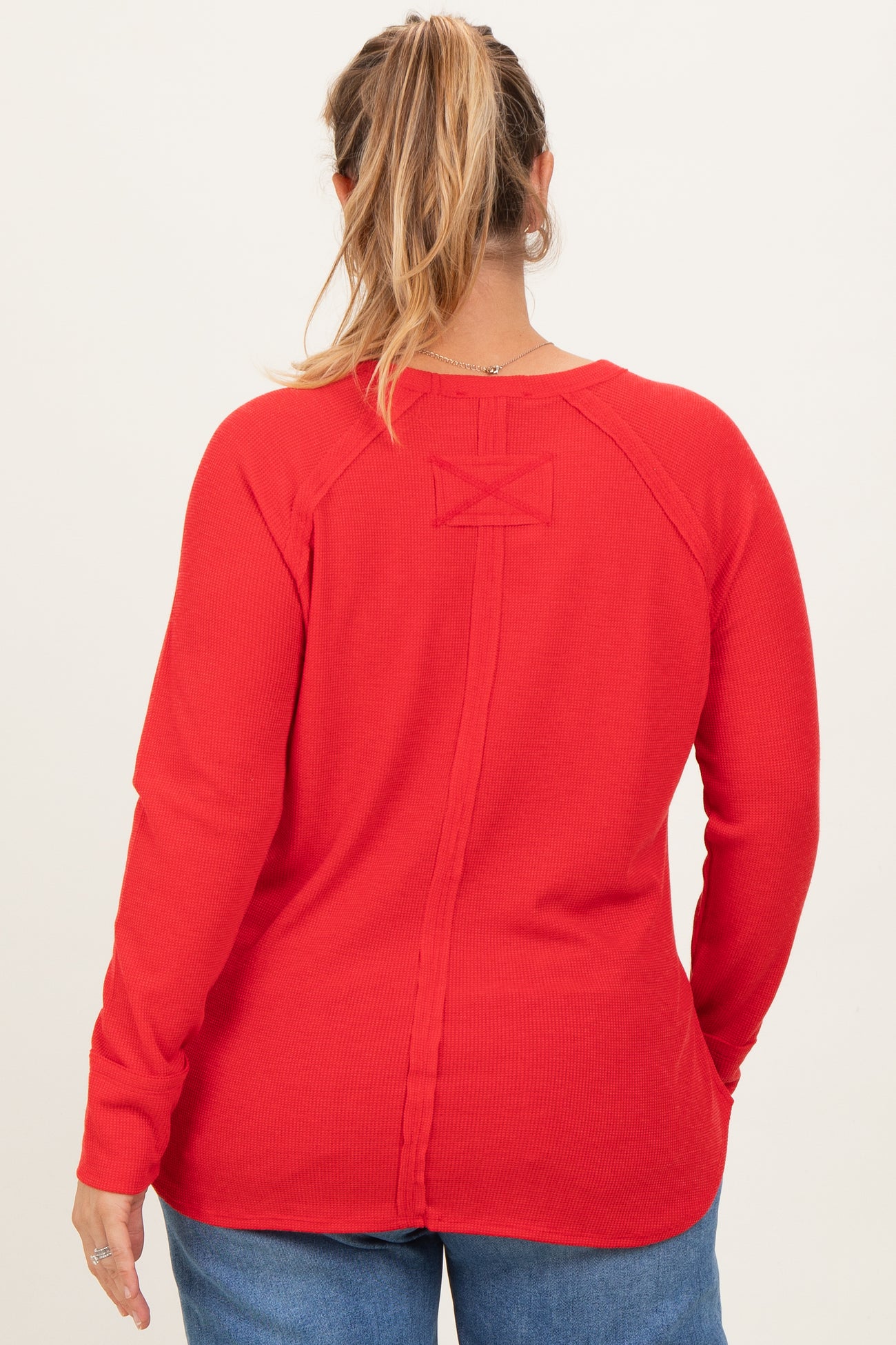 Red Baby Waffle Knit Long Sleeve Maternity Plus Top