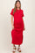 Red Basic Side Slit Short Sleeve Maternity Midi Dress