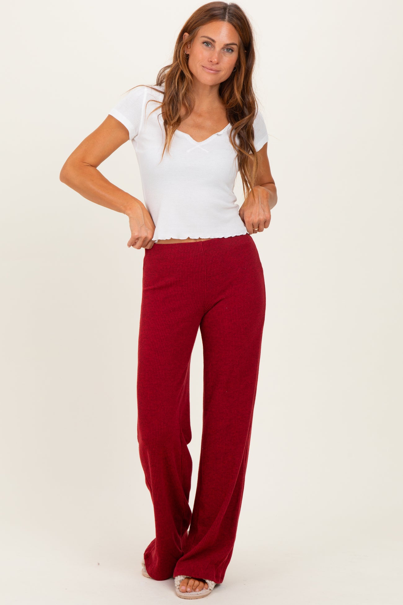 Red Brushed Knit Flare Leg Maternity Pants