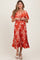 Red Brushstroke Print Cutout Maternity Midi Dress