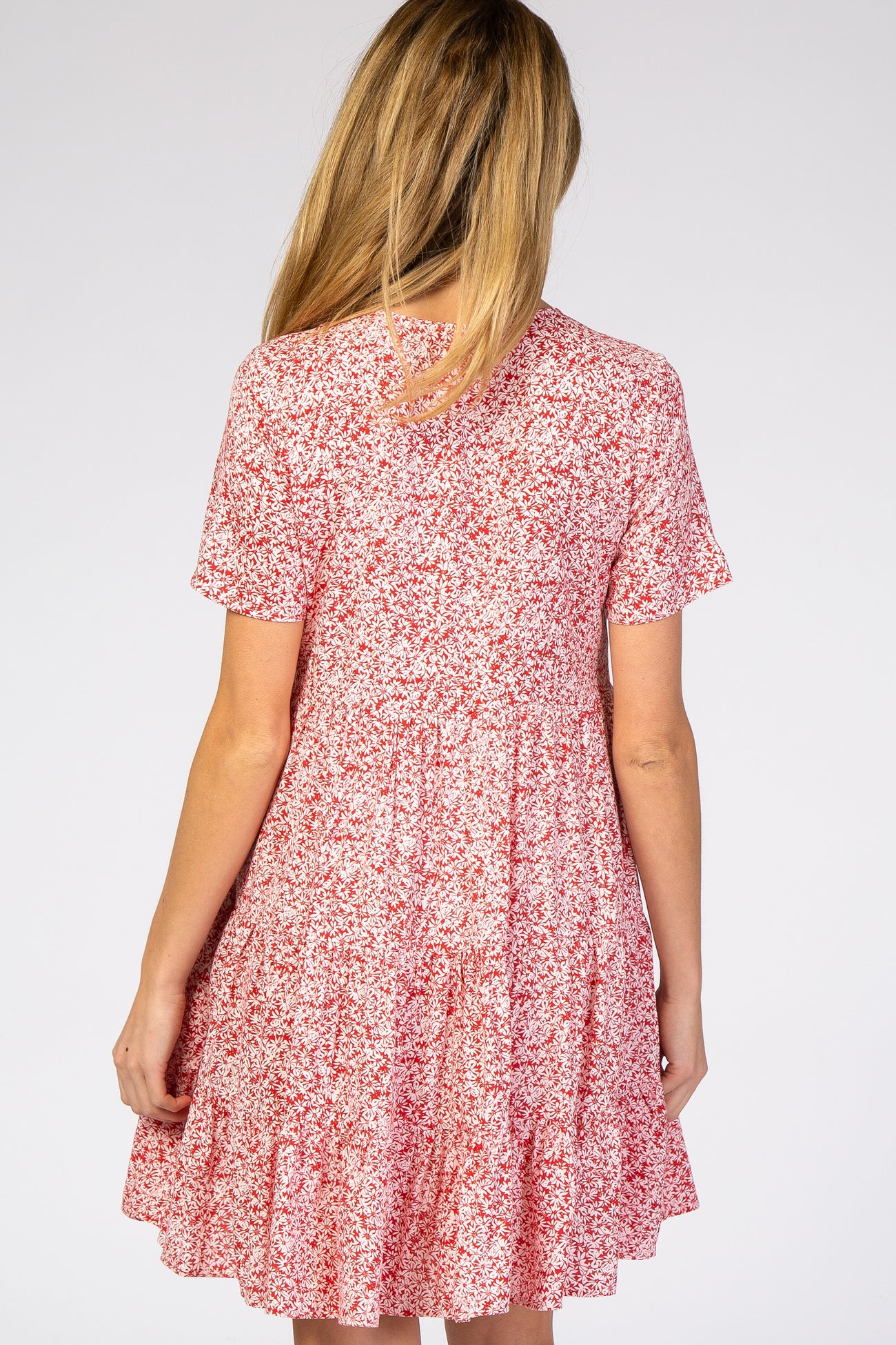Red Floral Ruffle Tiered Button Front Maternity Dress