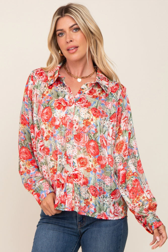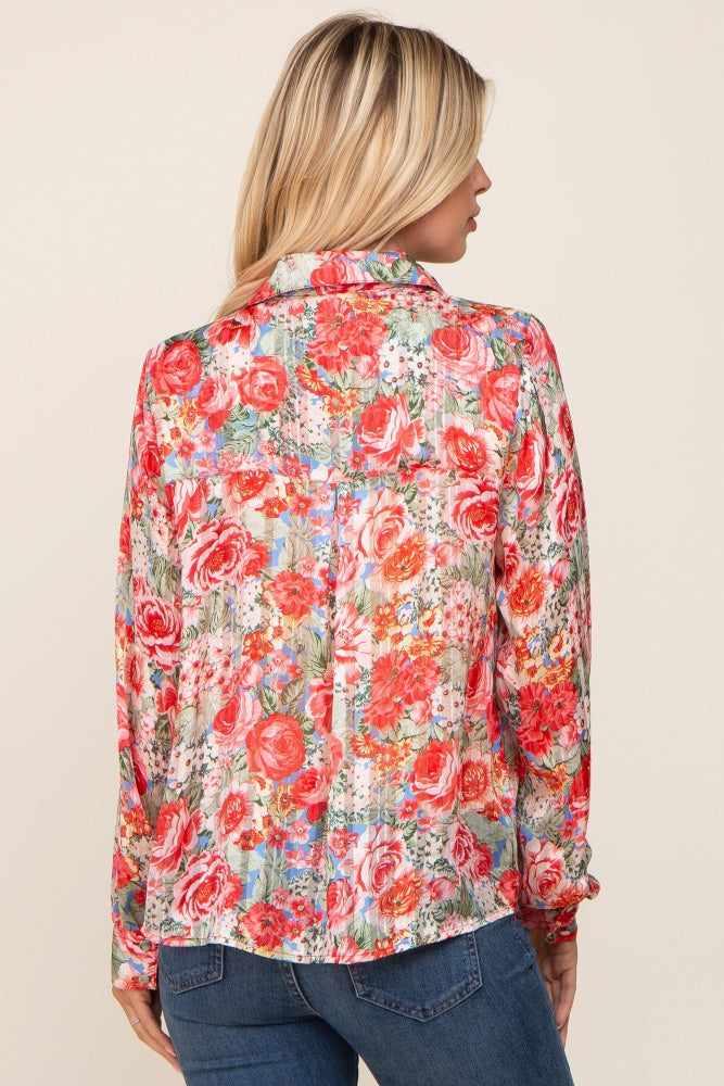 Red Floral Semi Sheer Shimmer Blouse