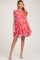 A floral maternity dress with a ruffle accent round neckline, flounce accent cap sleeves, a back keyhole button closure, and a tiered skirt.