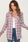 A printed long sleeve top with a collared neckline, rolled cuff sleeves and button down front. Front pocket detail.