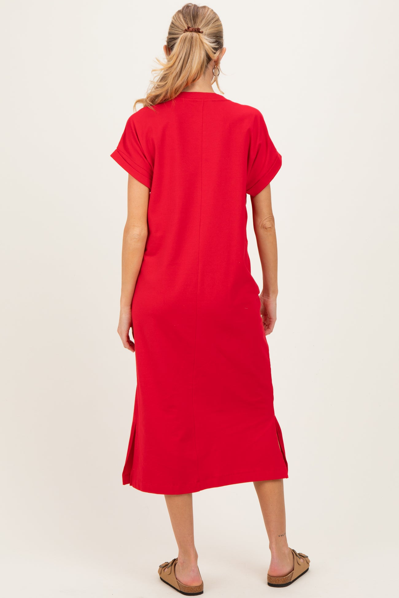 Red Pocket Front Maternity Midi T-Shirt Dress