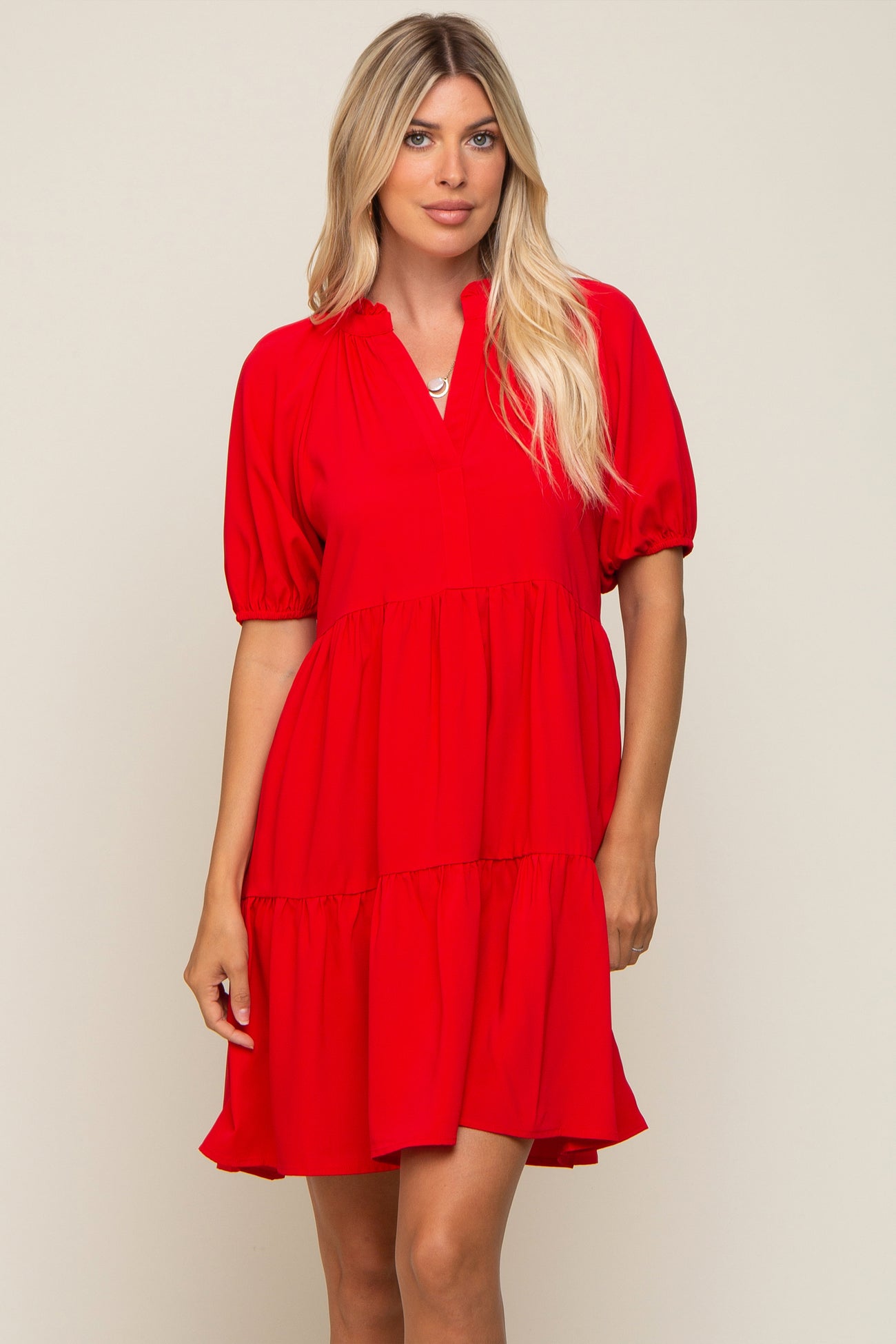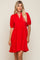 Red Satin Ruffle V-Neck Short Sleeve Dress