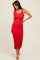 Red Smocked Sleeveless Ruffle Hem Fitted Dress