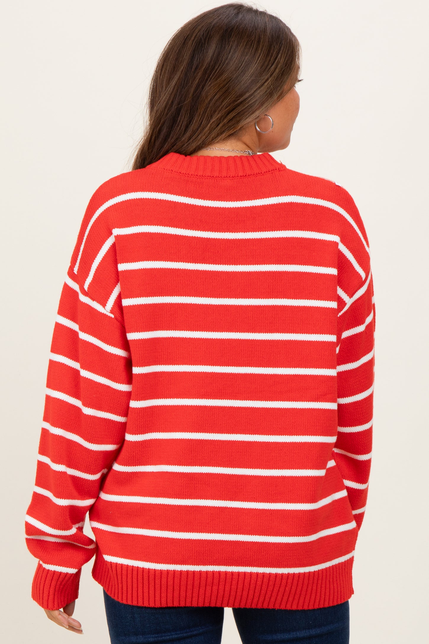 Red Striped Oversized Maternity Sweater