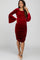 Red Velvet Ruched Bell Sleeve Maternity Dress