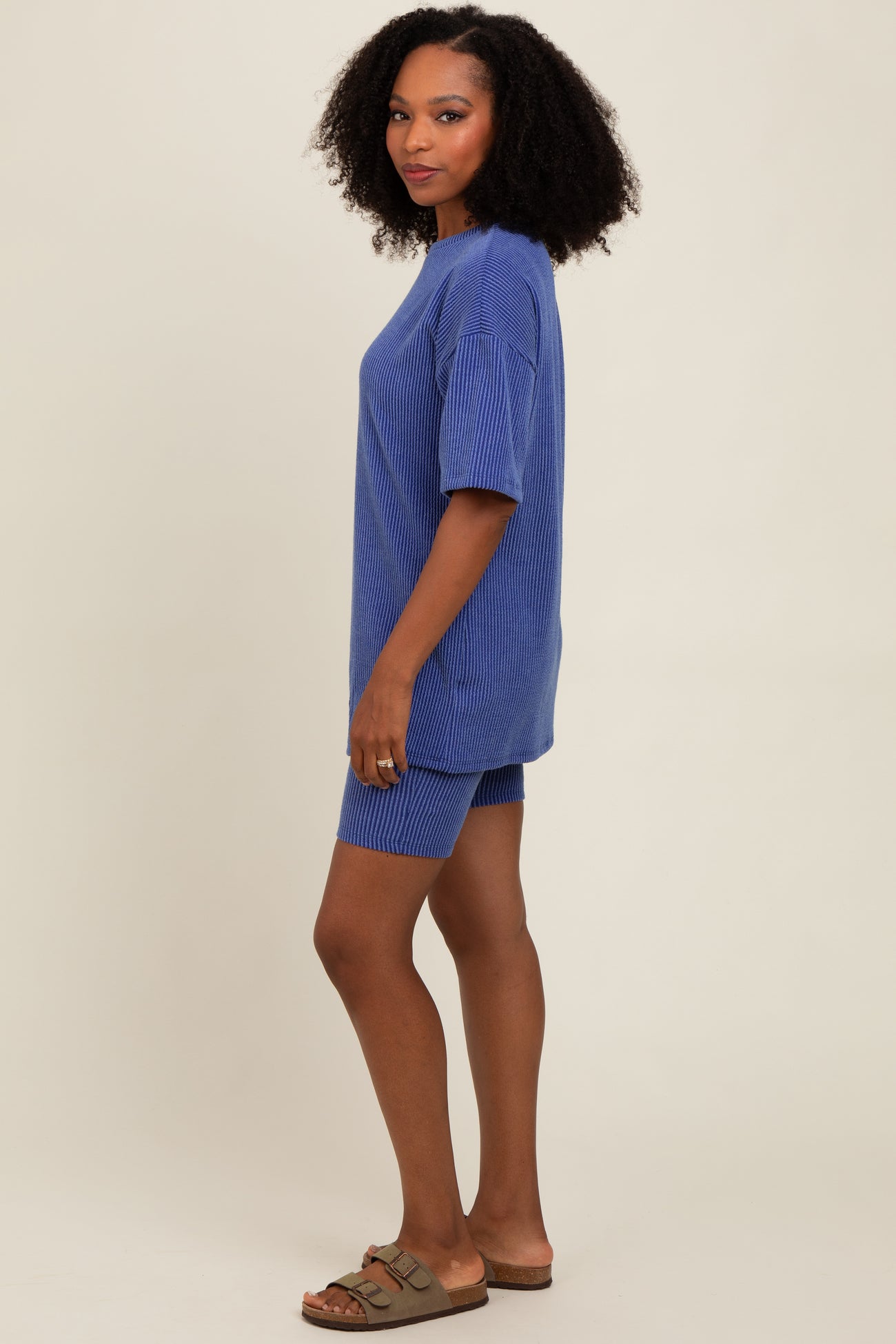 Royal Blue Ribbed Biker Shorts Set