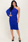 Royal Blue Ruched Mesh One Shoulder Long Sleeve Midi Dress