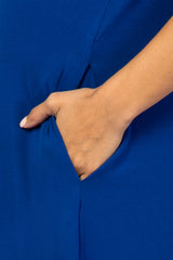 A solid hued maternity midi dress featuring short sleeves, side pockets and side slits.