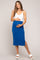 Royal Blue Soft Knit Ribbed Side Slit Maternity Midi Skirt