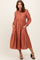Rust Button Down Long Sleeve Midi Shirt Dress