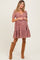 Embrace effortless style and comfort with our Rust Floral Tiered V-Neck Maternity Mini Dress. Featuring a flattering V-neckline and puffed short sleeves, this dress beautifully highlights your glow throughout pregnancy. Made from a soft, breathable fabric, it offers a relaxed fit with tiered layers that provide plenty of room for your growing bump. The charming rust base with delicate white floral prints adds a touch of boho chic, perfect for any casual outing or special occasion. Pair it with your favorite boots or sandals for a trendy, comfortable maternity look you'll love. Available in multiple sizes.