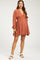 Rust Linen Deep V-Neck Long Sleeve Maternity Dress