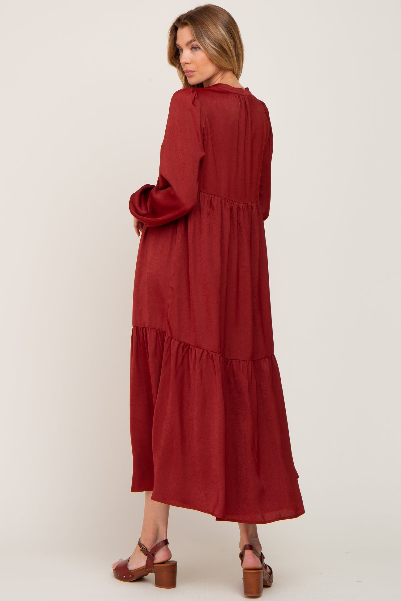 Rust Long Sleeve Tiered Maxi Dress