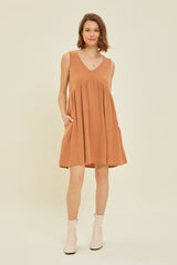 Rust Mineral-Washed Gauze V-Neck Flare Mini