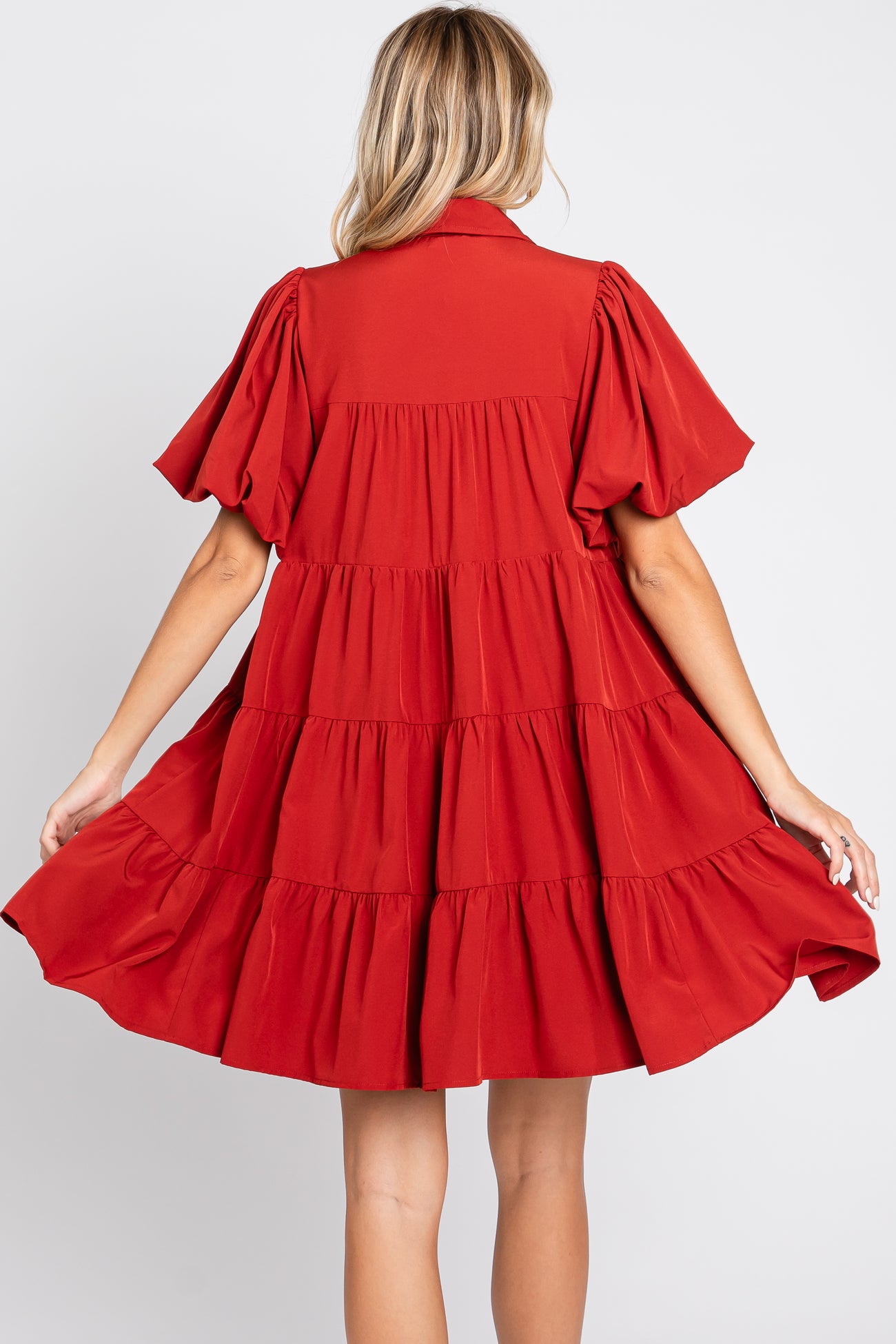 Rust Puff Sleeve Mini Shirt Dress