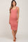 A ribbed knit maternity dress featuring a split front neckline and ruched sides.
