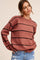 A striped, ultra soft knit sweater featuring a mock neckline and long sleeves.