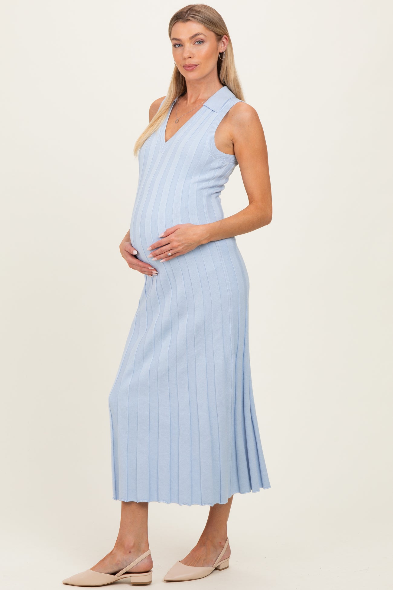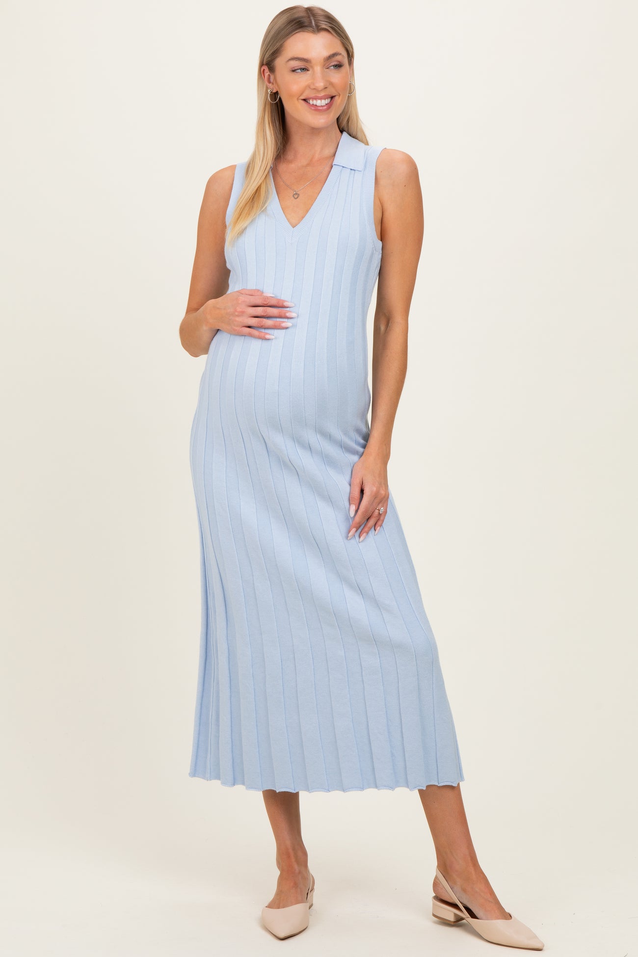 Sky Knit Collared Sleeveless Maternity Maxi Dress