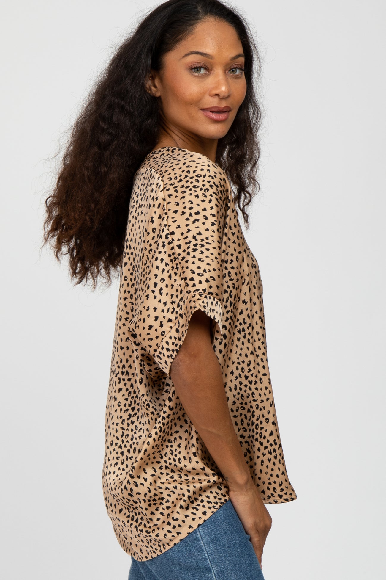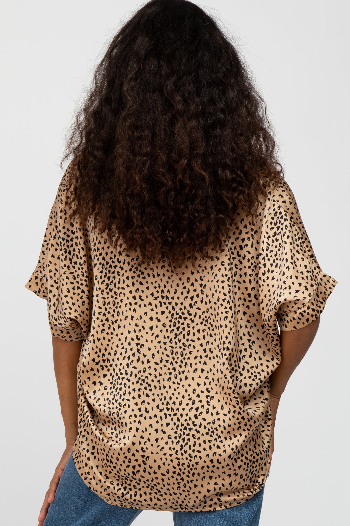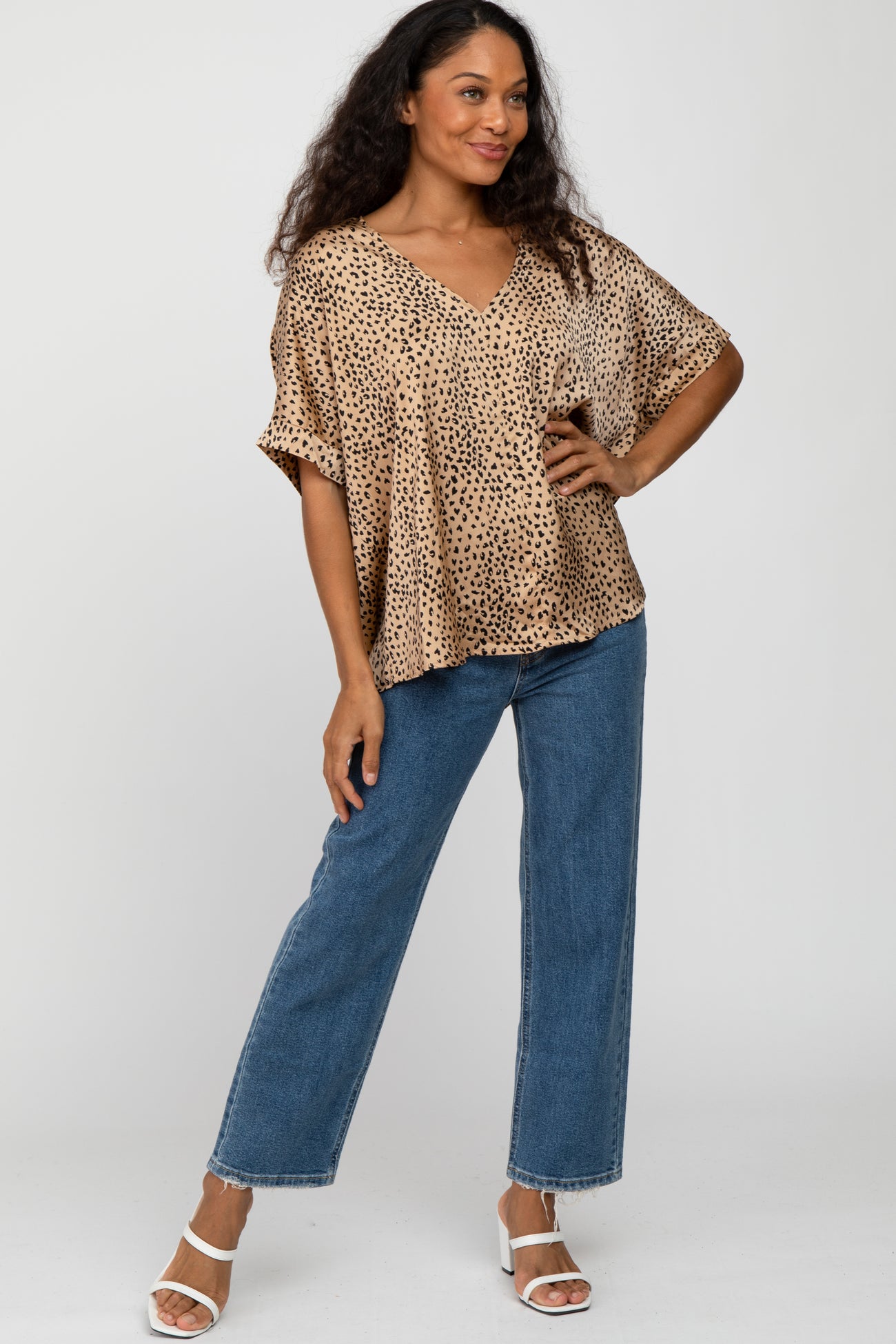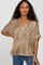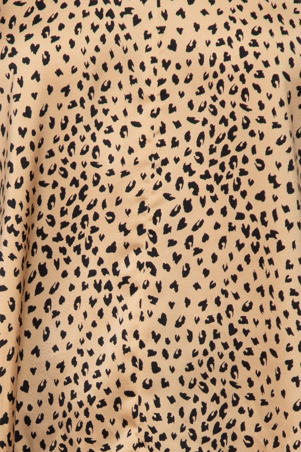A printed blouse with a v-neckline and cuffed sleeves in a silky material.