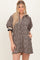 Taupe Animal Print Quarter Zip Puff Sleeve Mini Dress