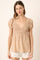 Taupe Ditsy Flower Print Smocked Peplum Blouse