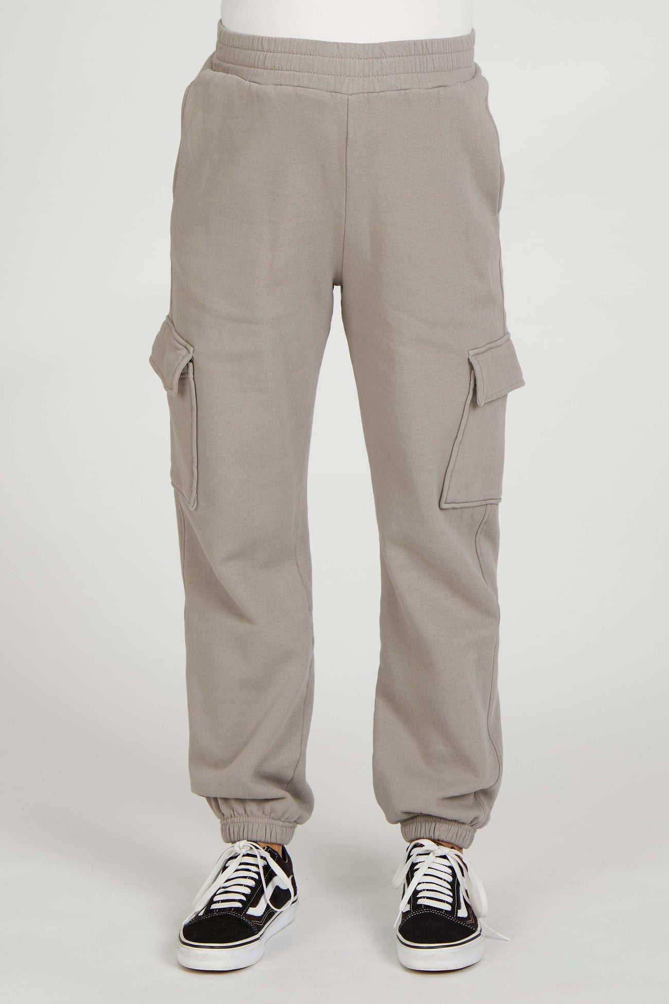 Taupe Fleece Cargo Maternity Sweatpants