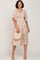 Details A floral print midi dress with a smocked bodice with v-neckline and ruffle trim flutter sleeves. Dress is partially lined. Content + Care