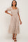 Taupe Floral Smocked Puff Sleeve Midi Dress