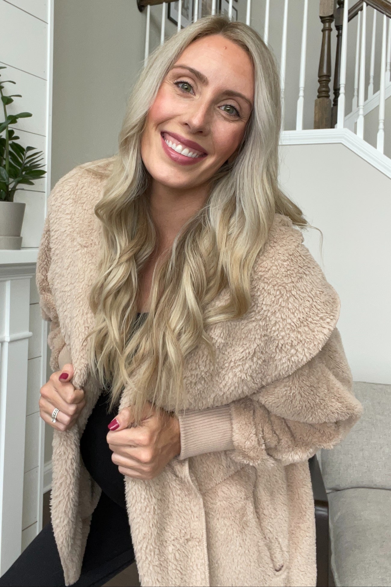 Taupe Fuzzy Hooded Long Sleeve Jacket