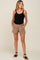 A pair of double layered gauze maternity shorts with an elastic waistband and side pockets.