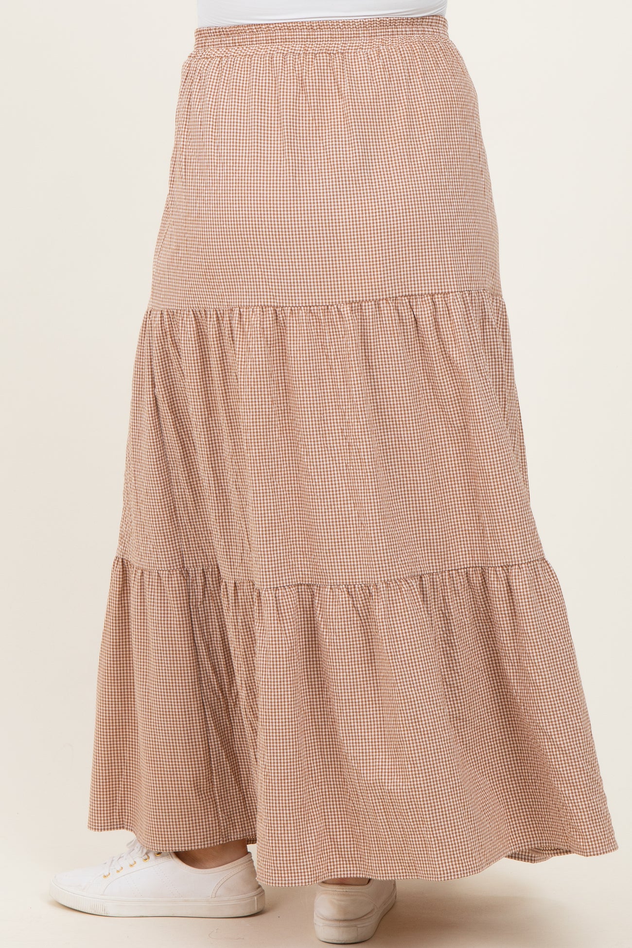Taupe Gingham Tiered Maternity Maxi Skirt