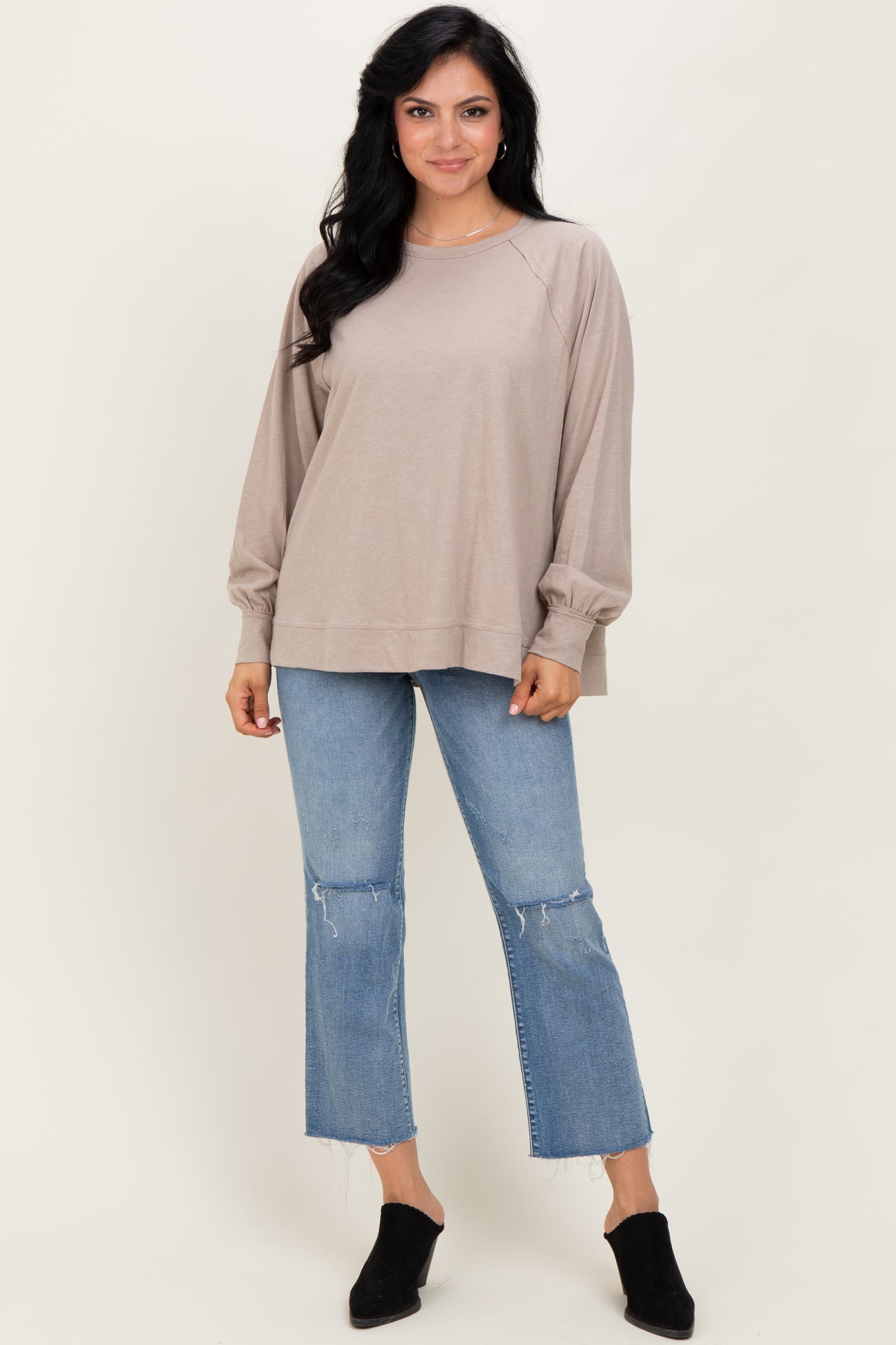 Taupe Oversized Cotton Slub Long Sleeve Top