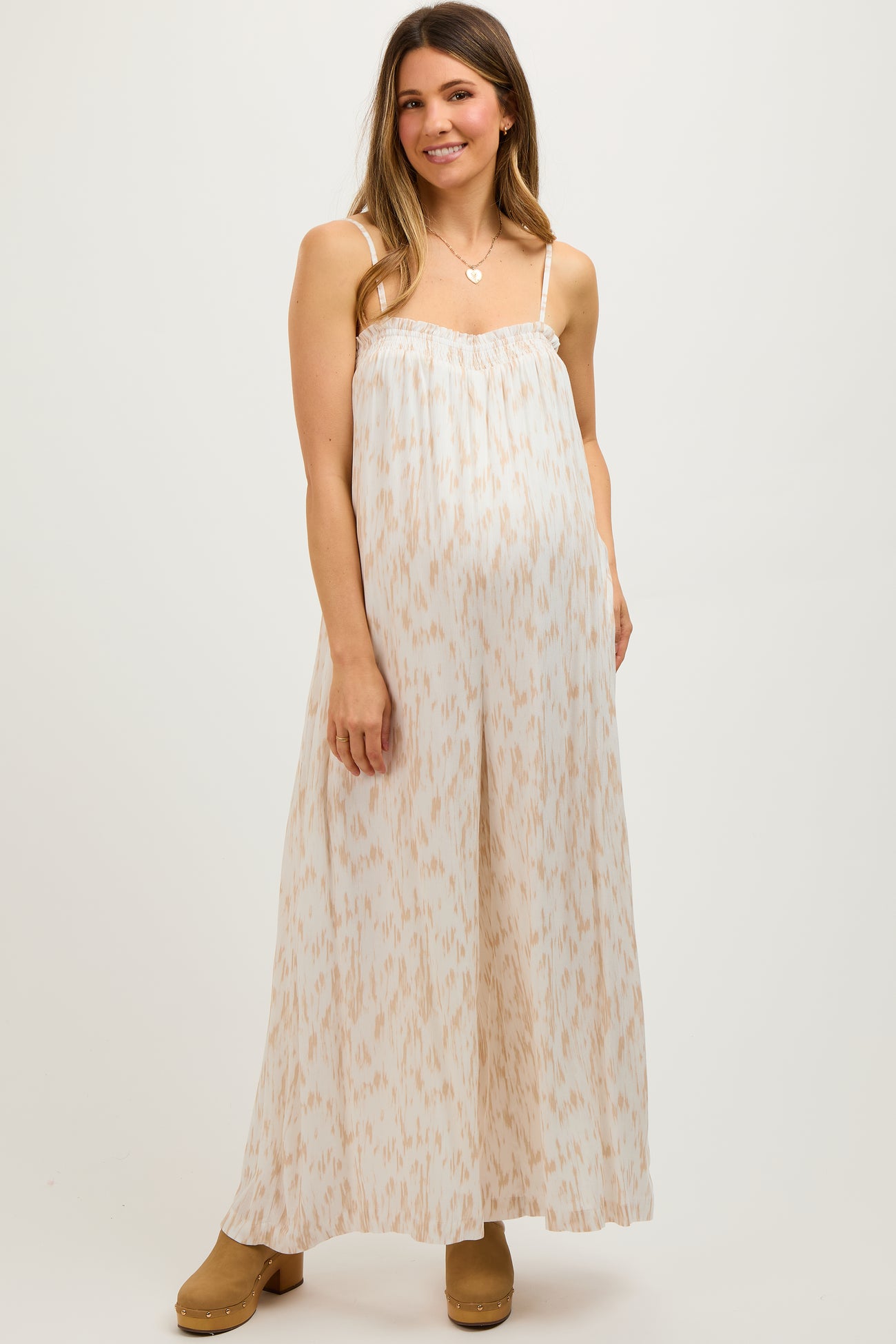 Taupe Printed Sleeveless Maternity Jumpsuit